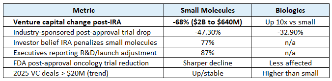 Post-IRA Investment and Innovation Impact: Small Molecules vs Biologics
